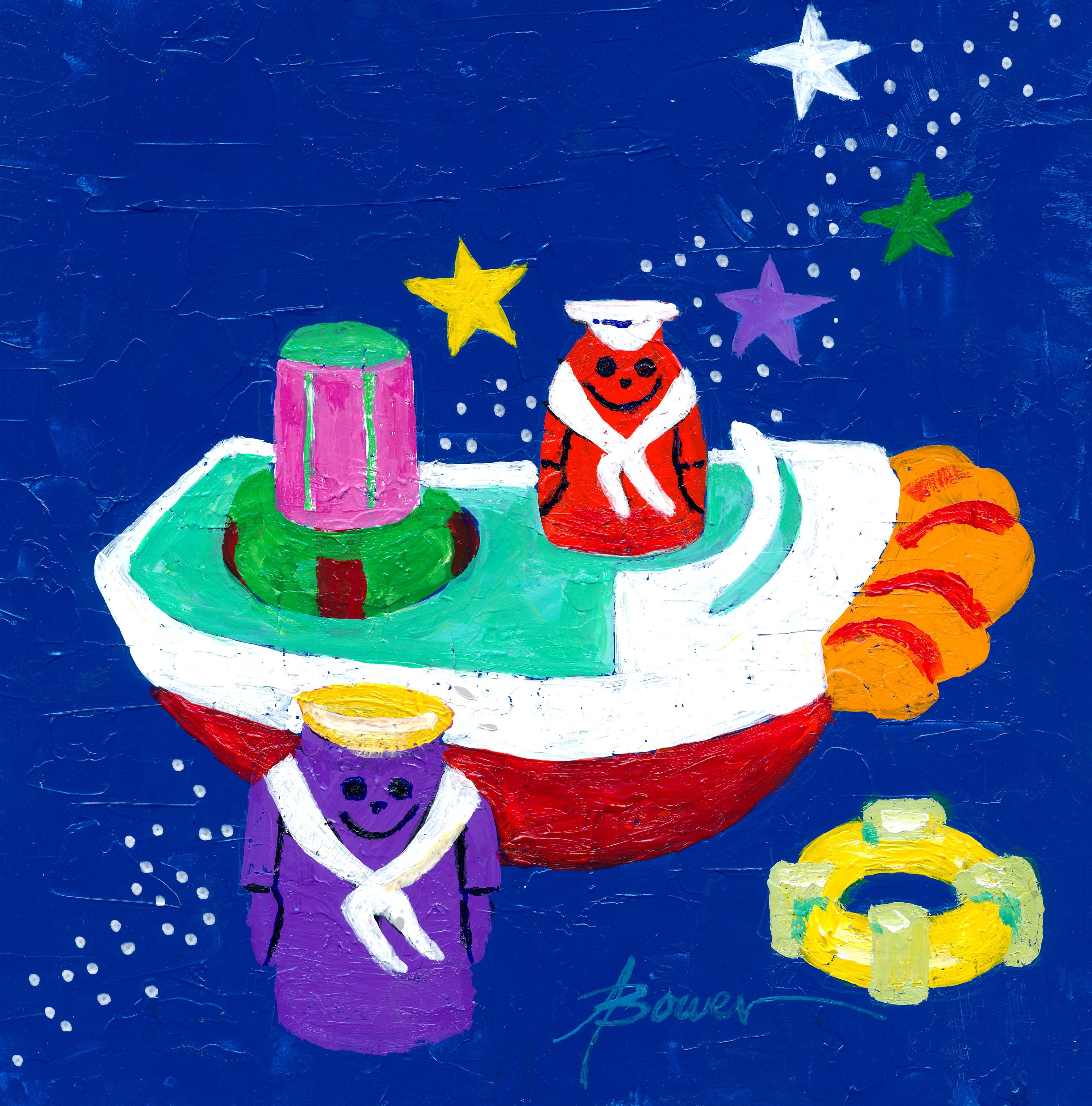 “Tugboat and Crew” 8″ x 8″ acrylic on museum quality panel