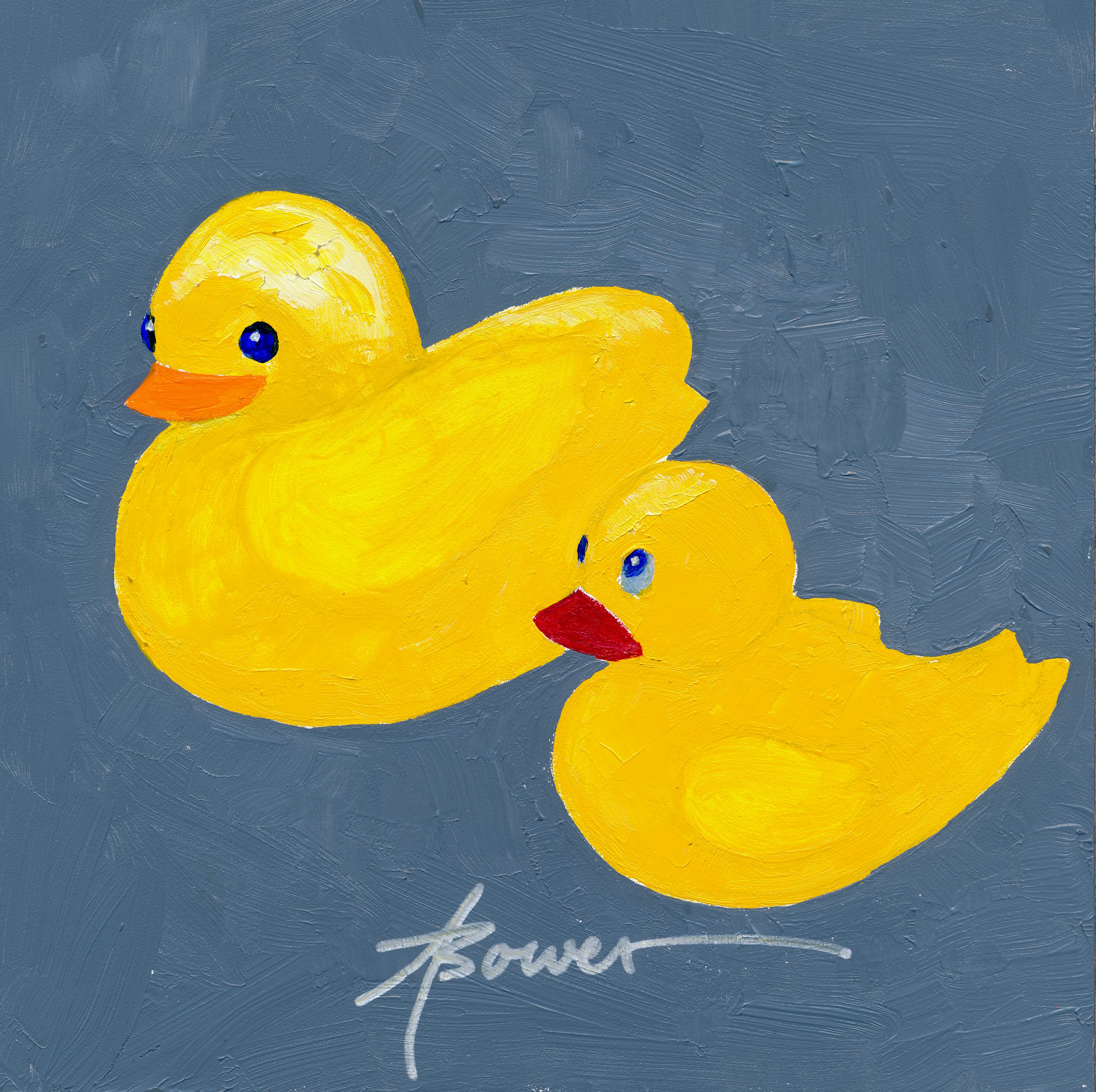 These two rubber duckies spend their days on the side of the bathtub in our hall bath…except when a cat comes in and knocks them into the tub then stares at them. The cats seem to think they should be IN the bathtub, not on the edge.