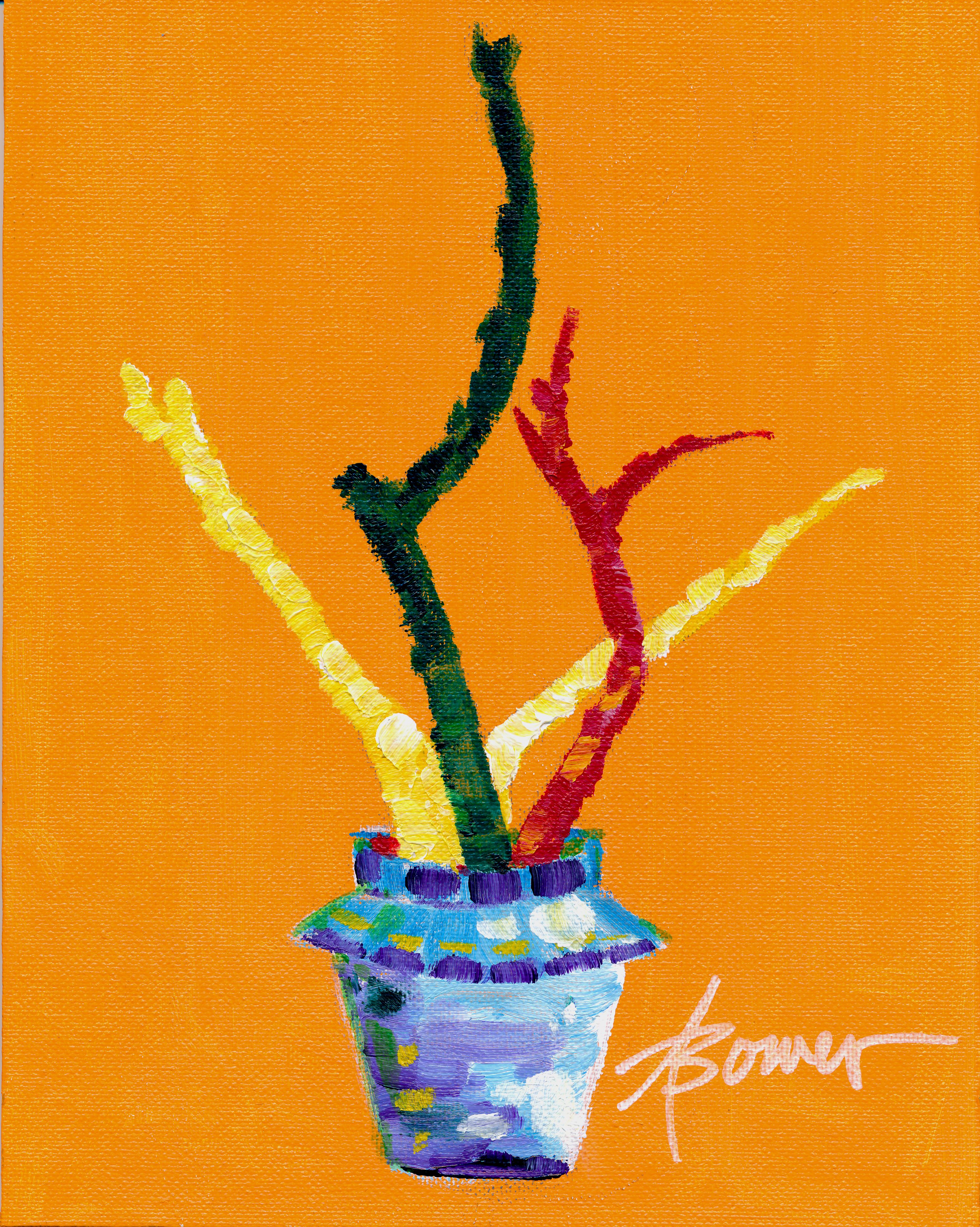 “Painted Sticks” 10″ x 8″ acrylic on canvas panel.