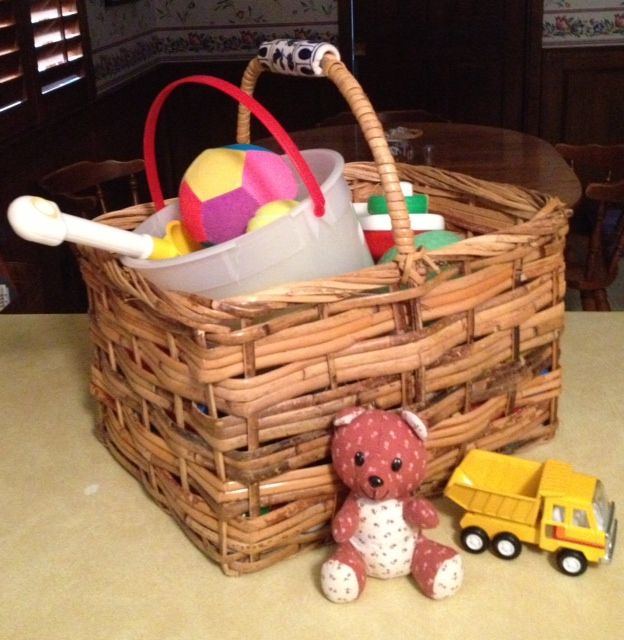 This is the last full week of the 30 paintings in 30 days challenge and I’ve decided to paint a few from “The Grand’s Toy Basket”. I’ve collected a some of their favorite toys through the years and kept them in a basket in the closet intending to paint them someday. Someday has arrived. Here is the basket full of some of their favorite toys.