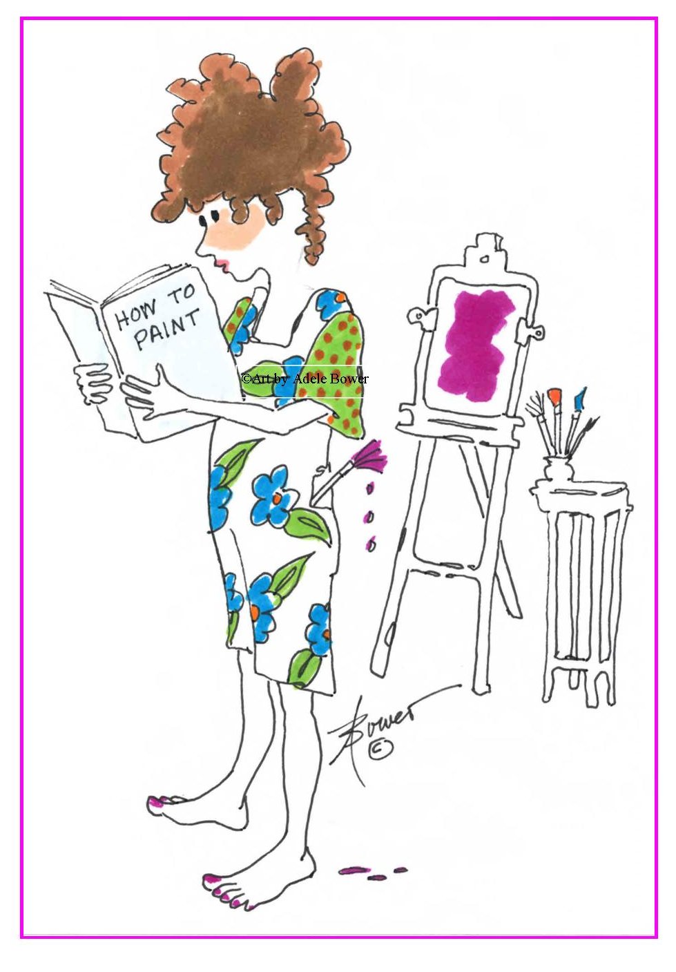 Step Eight: Here is the REALLY hard part of being in a show; plan what you are going to wear to the show. Of course, you can always drop off your paintings then leave, but that’s no fun. When I paint, my “ensemble” is very casual…layered with a ratty old smock and apron……not suitable for an art show. You do not have to look “arty”, unless you want that image.
