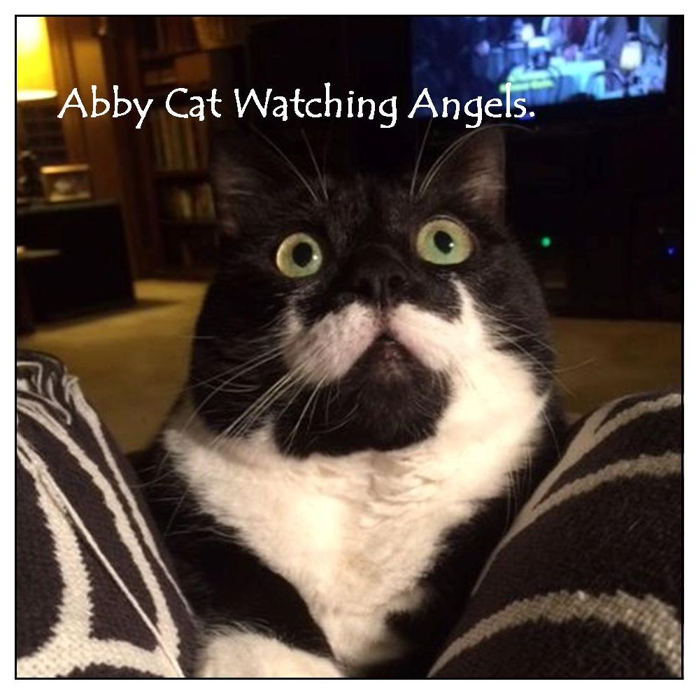 Most evenings David and I settle down in our comfy recliners to watch a movie. Tomboy Cat curls up in David’s lap and Abby Cat in mine…..a sweet little family scene. However, every night Abby Cat finds it difficult to curl up and go to sleep. After all, she has to watch the angels.