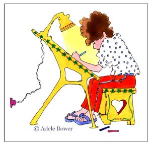 “At my drawing board”, art markers on marker paper by Adele Bower