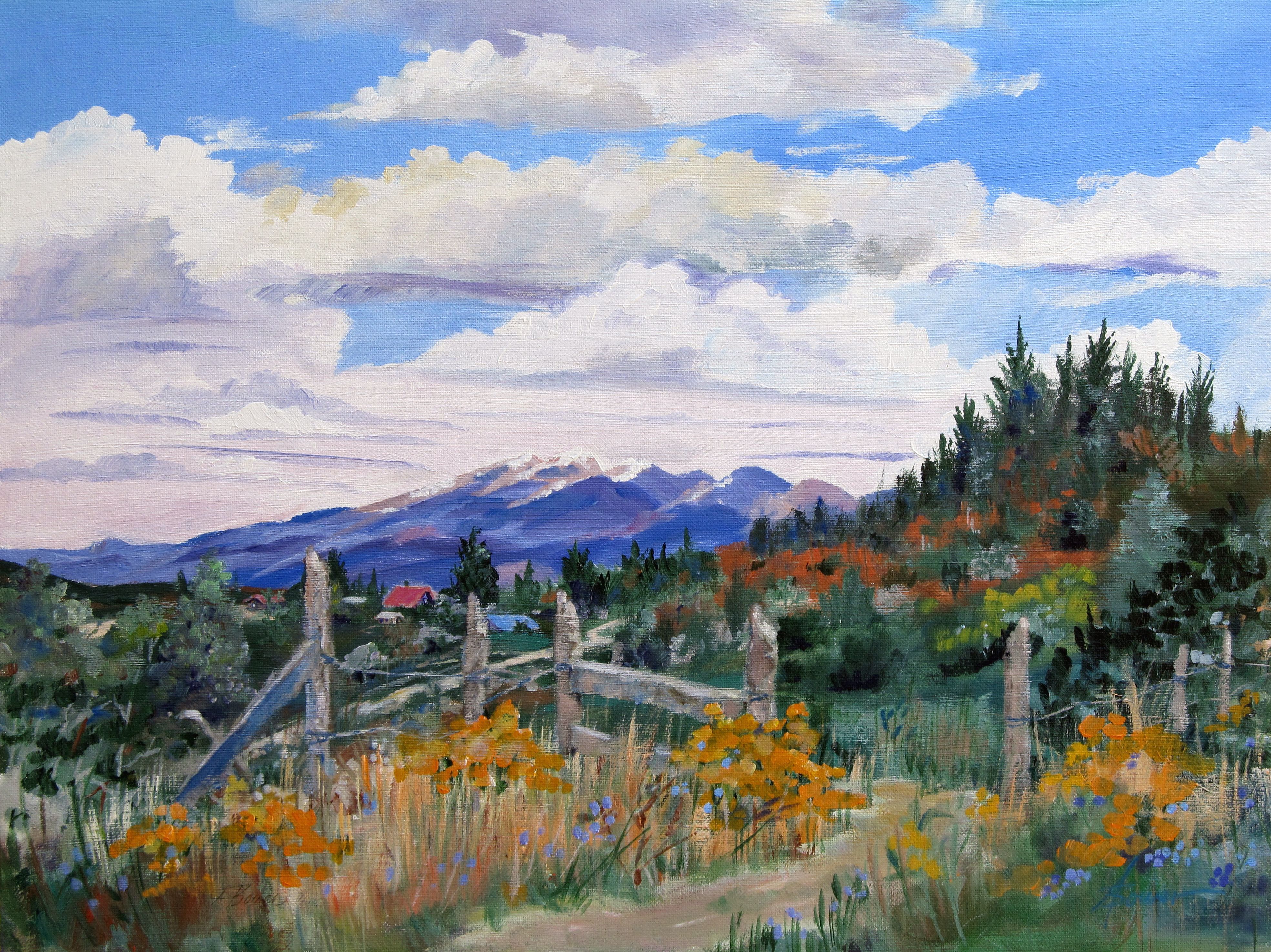 “Old North Fence” in Colorado, acrylic painting by Adele Bower.