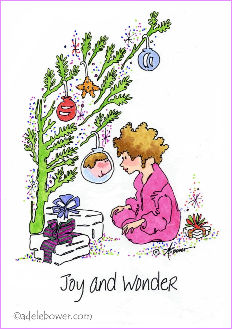 …….I loved to sit under our tree and laugh at how big my nose got when I looked into a shiny silver ornament.